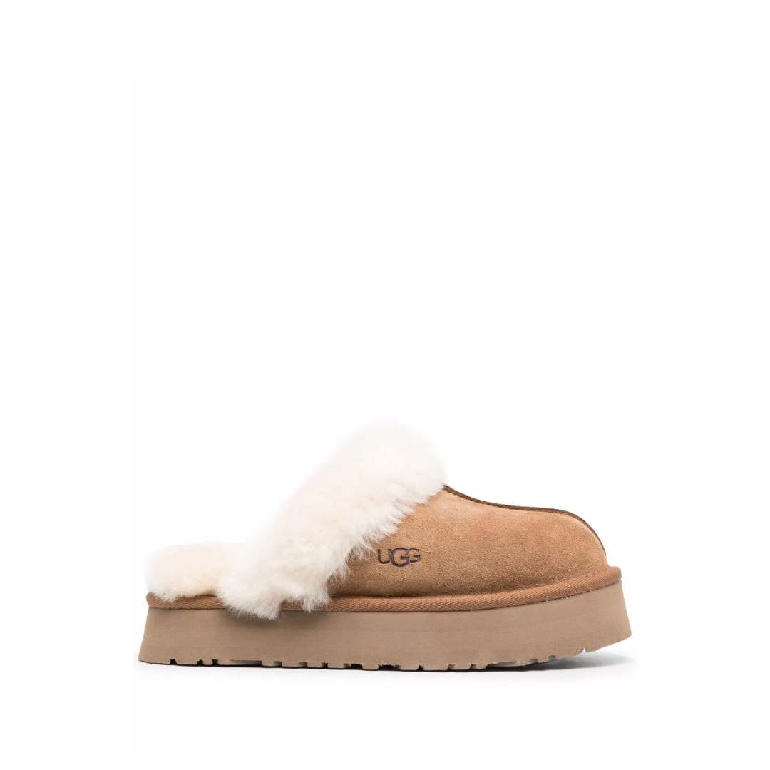 Suede disquette slippers in chestnut.